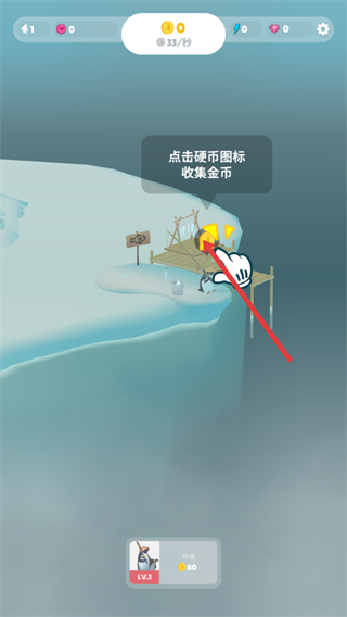 2、按照指引點擊場景內(nèi)的【硬幣圖標】,收集對應金幣資源,這是積累游戲貨幣的基礎操作。