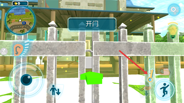 4、在圍欄前找到對應交互按鈕,點擊后完成【開門】操作,解鎖圍欄進入后續(xù)區(qū)域。
