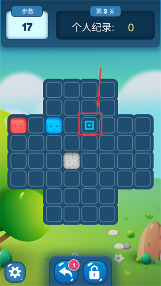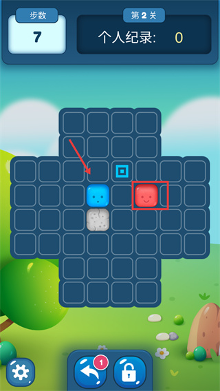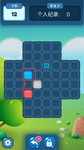 2、繼續(xù)推動(dòng)藍(lán)色方塊往上面移動(dòng)一格,推進(jìn)關(guān)卡進(jìn)度。