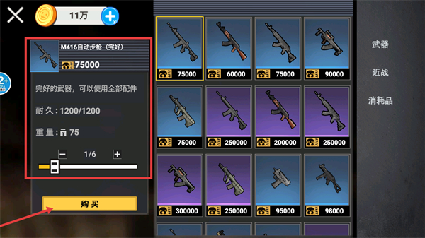 2、優(yōu)先購入【M416自動(dòng)步槍】這類完好武器,利用全部配件大幅提升戰(zhàn)斗能力助力校園生存。