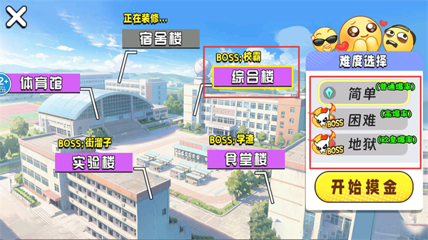 3、新手推薦選【簡(jiǎn)單】難度的【綜合樓】,借助BOSS掉落快速積累前期作戰(zhàn)資源提升生存概率。