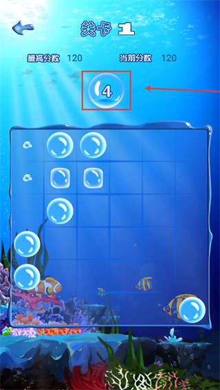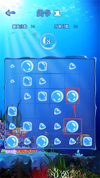 2、你的目標(biāo)是通過(guò)操作,消除網(wǎng)格中紅色箭頭指示的氣泡,以增加分?jǐn)?shù)。