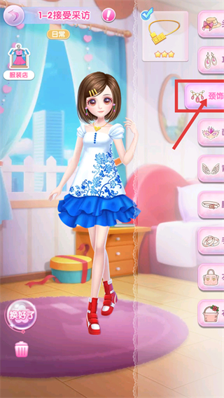 3、搭配完精致的配飾后,使裝扮更具層次感和時尚表現(xiàn)力,點(diǎn)擊換好了提交任務(wù)并接受采訪。