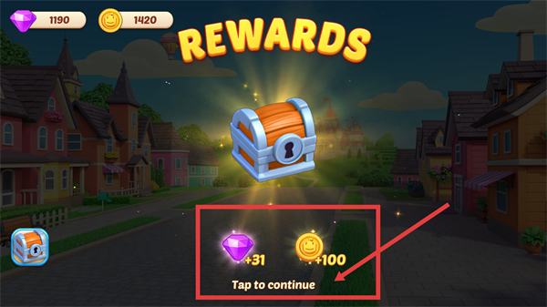 4、完成關(guān)卡后點擊【寶箱】領(lǐng)取獎勵,繼續(xù)探索花園島的童話冒險。