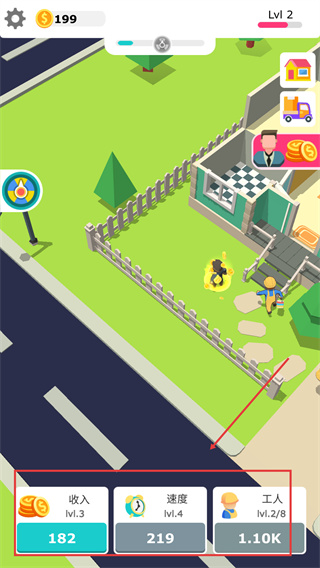 2、升級后收入、速度、工人效率顯著提升,需持續(xù)收集場景資源。
