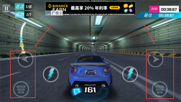 1、通過左右方向按鈕控制車輛轉(zhuǎn)向,同時(shí)利用【閃電圖標(biāo)】技能維持【161km/h】的車速。
