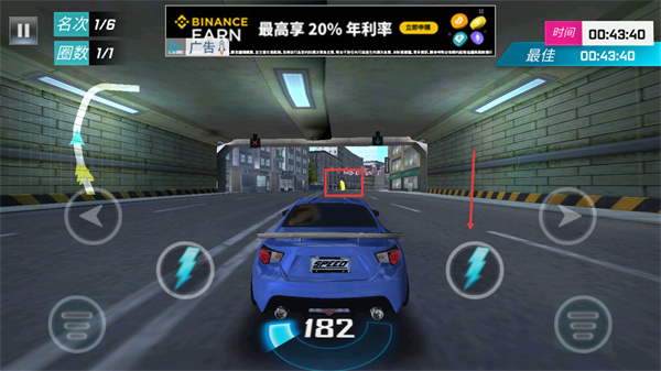2、駛出隧道后留意前方道路的道具,持續(xù)通過方向鍵調(diào)整路線,可以拾取紅色框內(nèi)的道具。