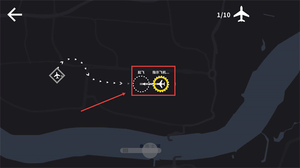 3、看到【起飛-指示飛機...】的提示模塊時,按照指引操作飛機起飛,同時留意進度【1/10】的推進情況。