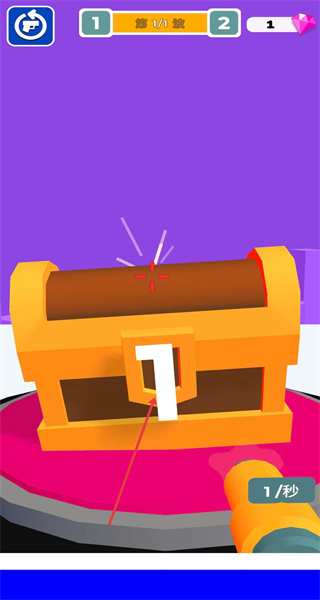3、瞄準(zhǔn)終點(diǎn)的寶箱進(jìn)行射擊,持續(xù)攻擊寶箱直至其解鎖,過程中保持每秒1發(fā)的射擊節(jié)奏。