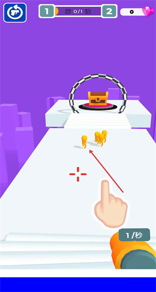 2、進(jìn)入關(guān)卡后,瞄準(zhǔn)道路上出現(xiàn)的黃色敵人進(jìn)行射擊,按每秒1發(fā)的頻率攻擊,逐步推進(jìn)至終點(diǎn)寶箱處。
