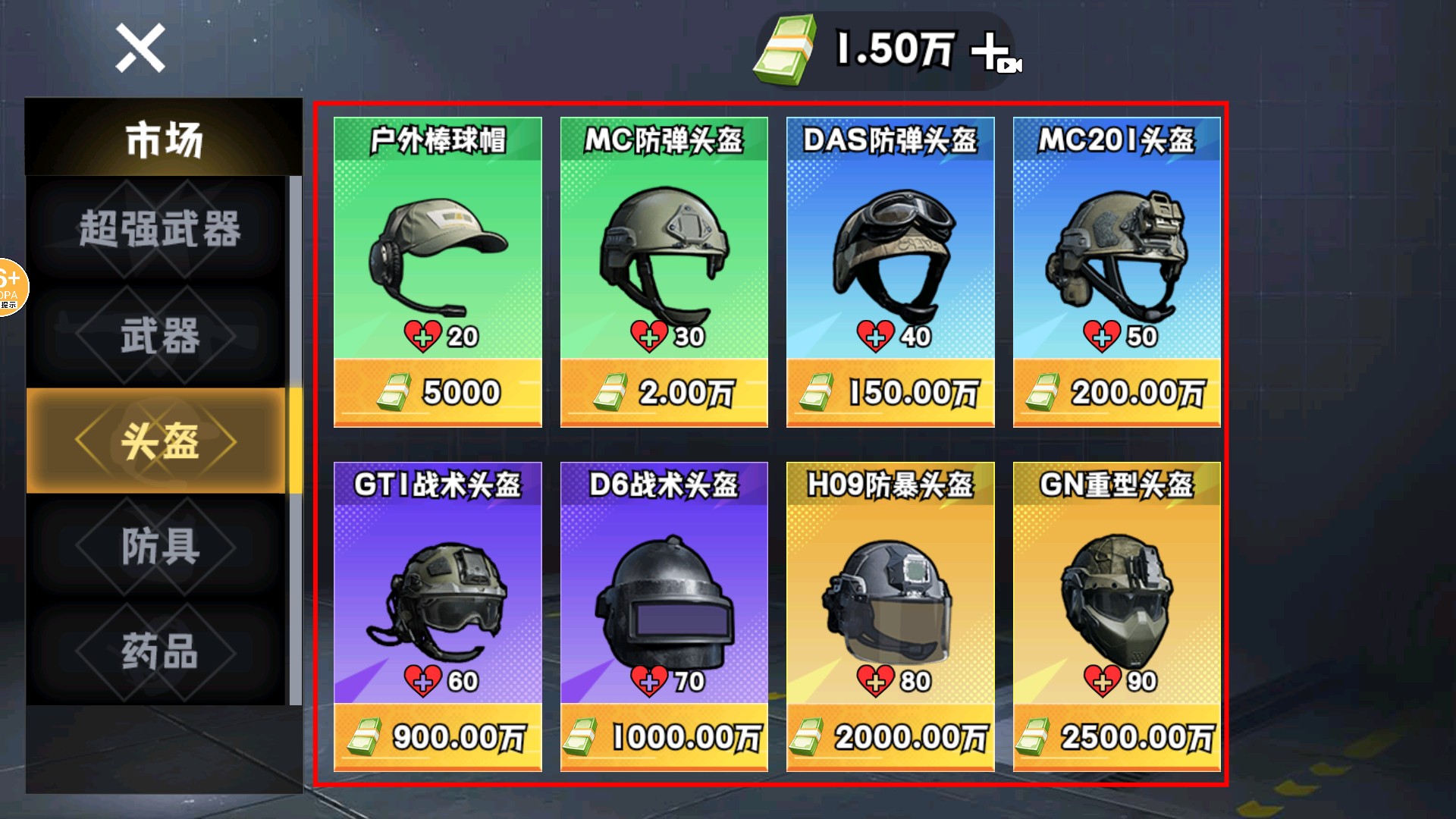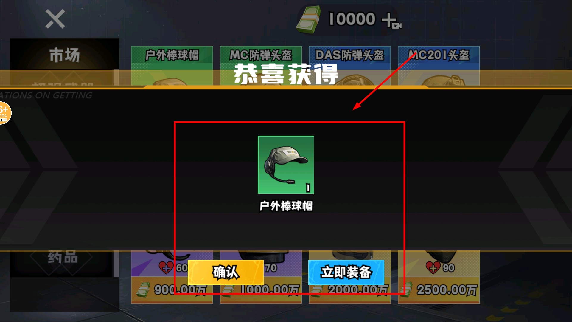2、在【市場(chǎng)】-【頭盔】分類中,初期可用啟動(dòng)資金購(gòu)買【戶外棒球帽】,提升20點(diǎn)生命值增強(qiáng)生存能力。