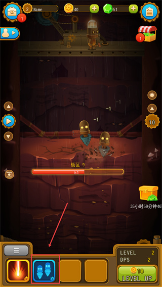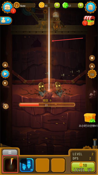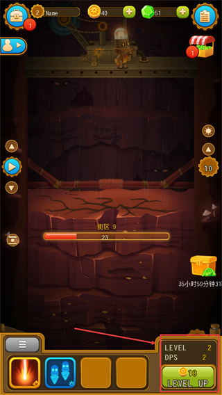 3、當(dāng)積累足夠金幣后,點(diǎn)擊【LEVEL-UP】按鈕可升級(jí)角色,提升【DPS-2】等屬性,增強(qiáng)挖掘能力。