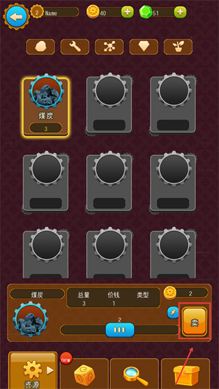 4、在資源界面中,點(diǎn)擊【賣】按鈕可將【煤炭-3】等資源兌換為金幣。