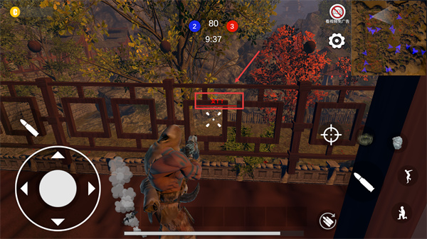1、戰(zhàn)斗中瞄準標記的敵人目標,利用射擊功能攻擊,同時關(guān)注上方【80】分數(shù)與【9:37】倒計時,推進對局進度。