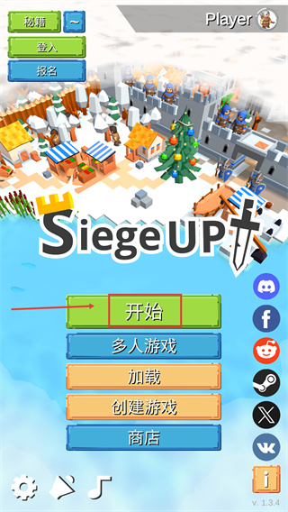 1、進(jìn)入【SiegeUP】界面后,點(diǎn)擊【開始】按鈕啟動(dòng)關(guān)卡,該關(guān)卡為策略類攻城建設(shè)任務(wù)。