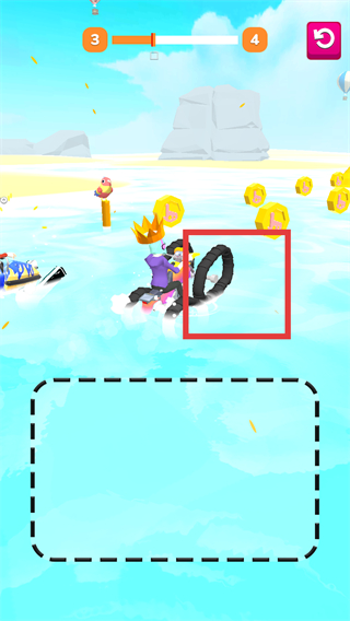 2、角色自動(dòng)前進(jìn),到水里時(shí)注意改變輪胎形狀以防陷入水中。