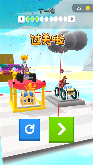 4、抵達(dá)關(guān)卡終點(diǎn)區(qū)域,點(diǎn)擊綠色按鈕進(jìn)入新的關(guān)卡。