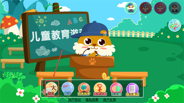 1、進入【兒童教育】界面后,選擇【語文】模塊開啟語文類學習關卡,可逐步解鎖不同題型。