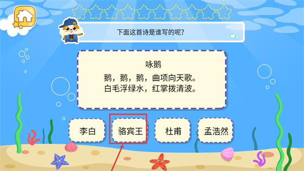 2、遇到【詠鵝】作者題時,選擇【駱賓王】選項,該選項為正確答案。