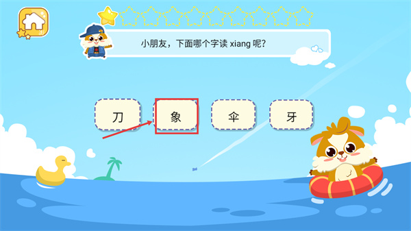 3、作答讀音題“哪個字讀xiang”時,選擇【象】選項,此字讀音匹配題干要求。