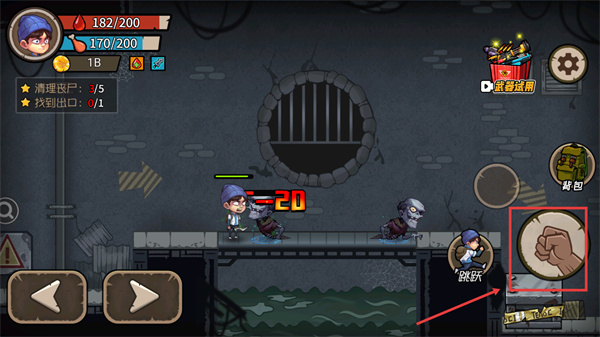 2、遭遇喪尸時(shí)點(diǎn)擊攻擊按鈕對(duì)戰(zhàn),擊敗喪尸可推進(jìn)【清理喪尸】進(jìn)度,同時(shí)留意自身血量損耗。
