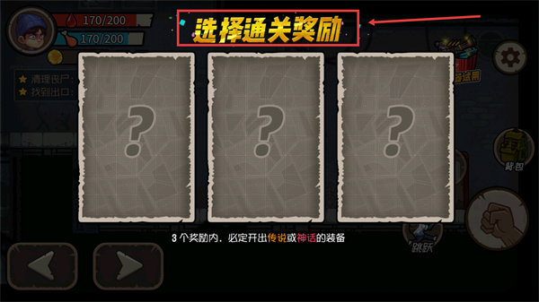 3、通關(guān)后進(jìn)入【選擇通關(guān)獎(jiǎng)勵(lì)】界面,三個(gè)選項(xiàng)中必定開出傳說或神話裝備,選擇其一即可獲取獎(jiǎng)勵(lì)。