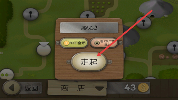 1、選擇挑戰(zhàn)關卡點擊走起按鈕,消耗對應金幣進入游戲關卡。