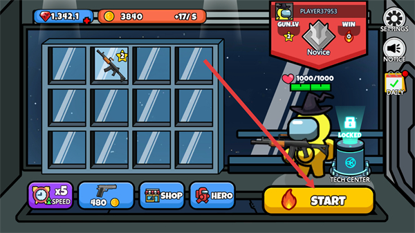 1、進(jìn)入游戲主界面,點(diǎn)擊黃色START按鈕開啟對(duì)局匹配。