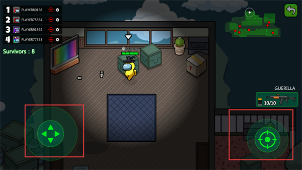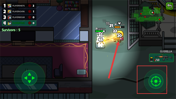 2、操控左側(cè)方向按鈕移動(dòng)角色,右鍵是攻擊鍵嗎,點(diǎn)擊即可射擊。