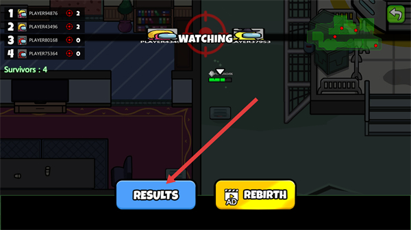 4、對(duì)局結(jié)束后點(diǎn)擊RESULTS按鈕,查看本局的戰(zhàn)績(jī)數(shù)據(jù)。
