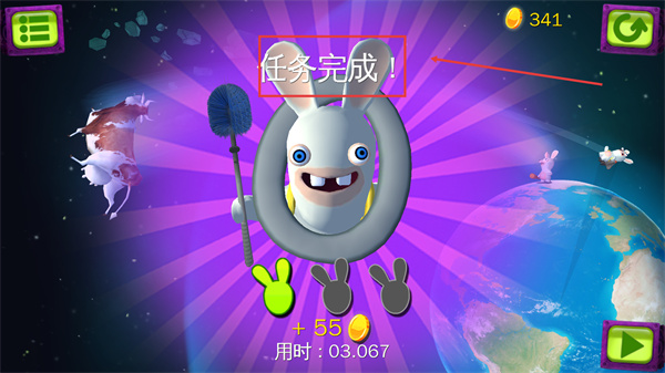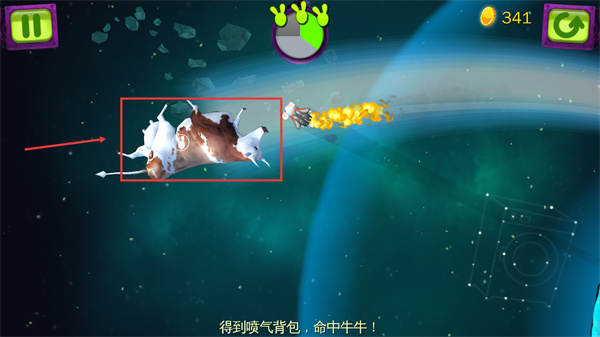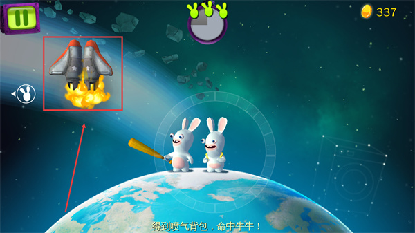 1、支持單指輕松操作,用球棒將瘋狂兔子送入太空,搭配噴氣背包與星球重力控制飛行軌跡,需注意燃料消耗。