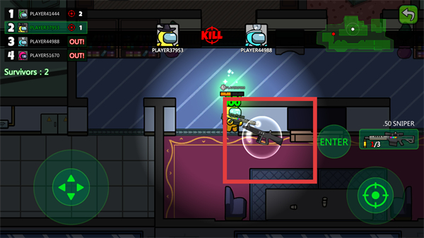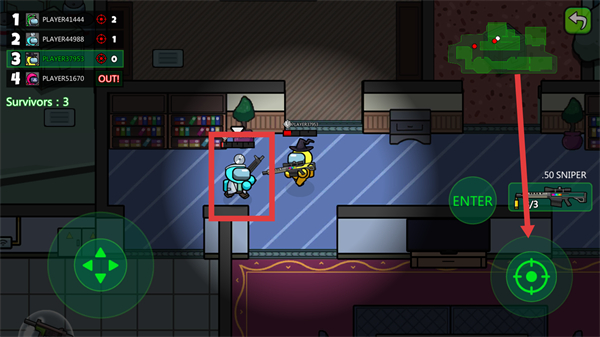 3、發(fā)現(xiàn)敵方角色后瞄準(zhǔn)目標(biāo),點擊攻擊按鈕發(fā)起火力輸出。
