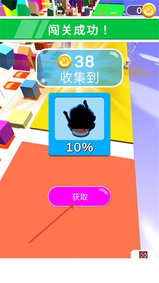 4、闖關(guān)成功后,點(diǎn)擊【獲取】按鈕領(lǐng)取獎勵,包含收集的金幣與解鎖的道具。