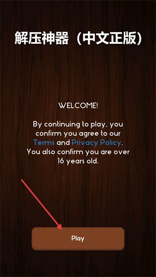 1、在游戲啟動(dòng)界面,點(diǎn)擊【Play】按鈕同意條款后進(jìn)入游戲,開啟解壓體驗(yàn)。