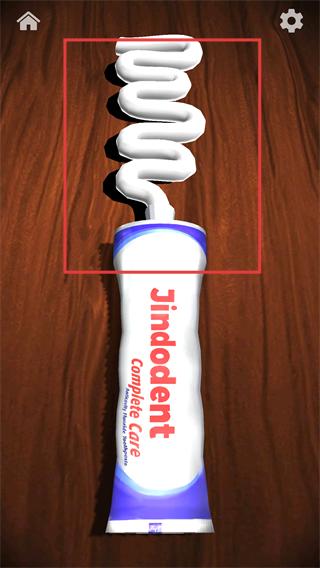 3、持續(xù)互動(dòng)操作,讓物品呈現(xiàn)更多動(dòng)態(tài)變化(如牙膏擠出的形態(tài)變化),體驗(yàn)解壓過程。