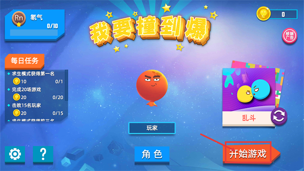 1、點擊【開始游戲】進入對戰(zhàn)模式,當(dāng)前選擇的是【亂斗】玩法,同時可查看【每日任務(wù)】獲取對應(yīng)金幣獎勵的目標(biāo)。