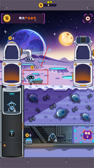 4、觀察機(jī)器人推送資源的動(dòng)畫,完成資源運(yùn)輸后會(huì)自動(dòng)增加金幣,此時(shí)可繼續(xù)部署新的機(jī)器人提升效率。