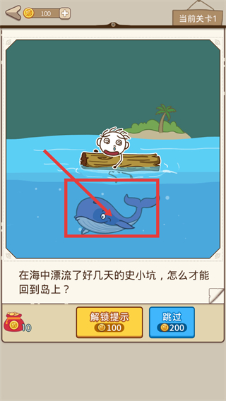 1、史小坑漂流時(shí),可借助【鯨魚】的力量回到島上,觀察水中生物的互動(dòng)機(jī)制,找到讓鯨魚協(xié)助移動(dòng)的操作方式。