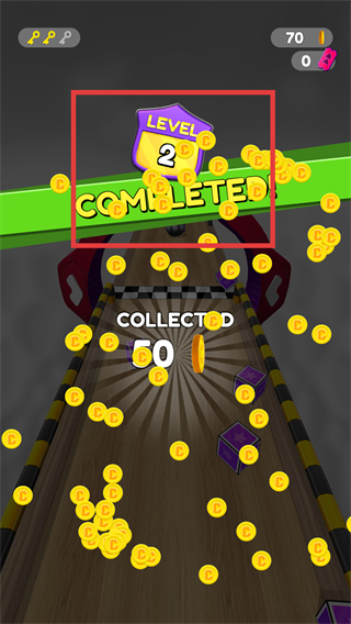 4、通關(guān)后顯示收集到的金幣,可解鎖皮膚,繼續(xù)挑戰(zhàn)更高難度關(guān)卡。