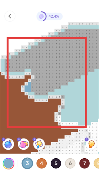 3、根據(jù)圖案上的數(shù)字提示,選擇對(duì)應(yīng)數(shù)字的顏色,為圖案區(qū)域填充色彩,逐步完成涂色進(jìn)度。