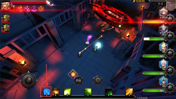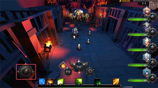 2、進(jìn)入關(guān)卡后,點(diǎn)擊【方向鍵】按鈕觸發(fā)戰(zhàn)斗,同時(shí)可通過(guò)左側(cè)的技移動(dòng)圖標(biāo)調(diào)整角色站位。
