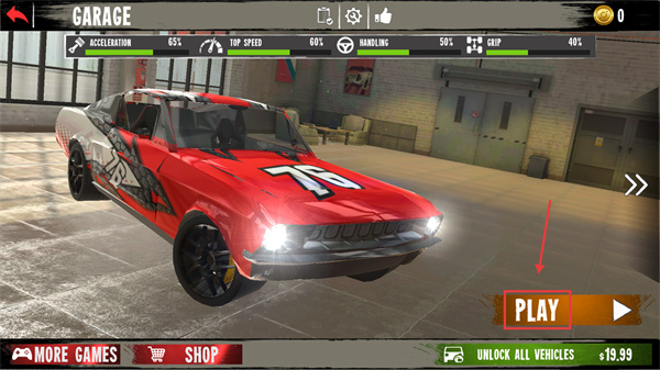 1、在【GARAGE】界面查看車輛屬性,點擊【PLAY】按鈕即可進入比賽,無需額外配置。