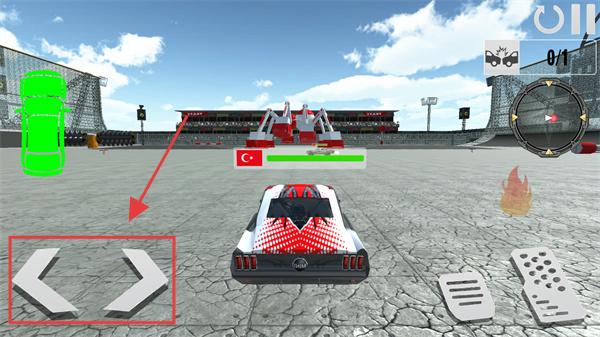 2、進入賽場后,通過左右方向鍵控制車輛移動,優(yōu)先向場地中央?yún)^(qū)域行駛,推進【0/1】的任務(wù)進度。