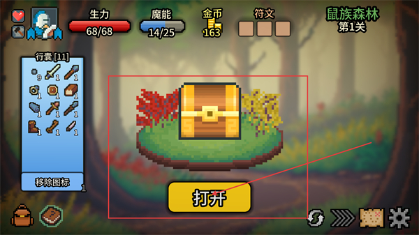 1、在【鼠族森林-第1關(guān)】地圖中,點擊【寶箱】節(jié)點,進(jìn)入寶箱交互界面,準(zhǔn)備獲取其中的資源獎勵。