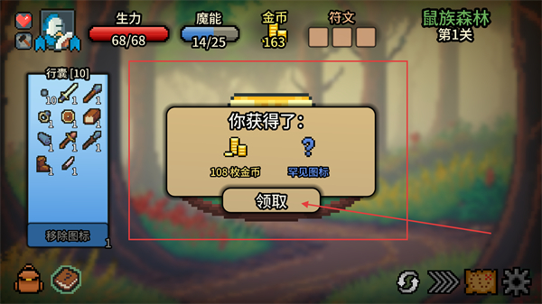 3、看到【你獲得了】的獎勵彈窗后,點擊【領(lǐng)取】按鈕,獲取【108枚金幣】與罕見圖標(biāo),補(bǔ)充行囊資源。