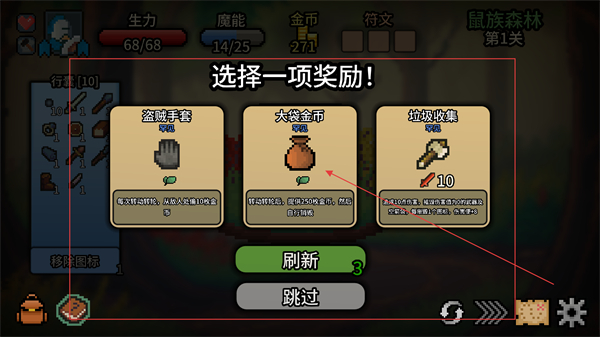 4、進(jìn)入【選擇一項獎勵】界面,挑選【大袋金幣】這類資源型獎勵,為后續(xù)拉桿與戰(zhàn)斗儲備更多金幣。